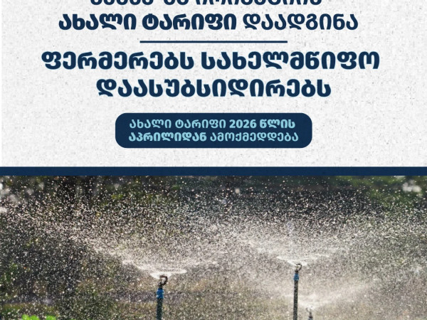 საქართველოს ენერგეტიკისა და წყალმომარაგების მარეგულირებელმა ეროვნულმა კომისიამ (სემეკი) ირიგაციის მომსახურების ახალი ტარიფი განსაზღვრა, რომელიც აპრილიდან ამოქმედდება.