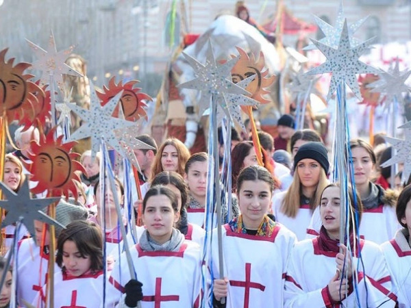 საქართველოს პირველმა ლედიმ, თამარ ბაგრატიონმა ალილოს მსვლელობის მონაწილეებს საშობაო ნობათი გადასცა.