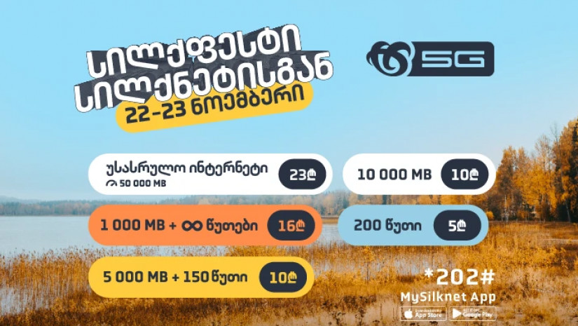 22 და 23 ნოემბერს, სილქნეტის აბონენტები გაიაქტიურებენ სილქფესტის შეთავაზებებს კოდით *202#, აპლიკაციით Mysilknet, ან პირდაპირ ვებ გვერდიდან: