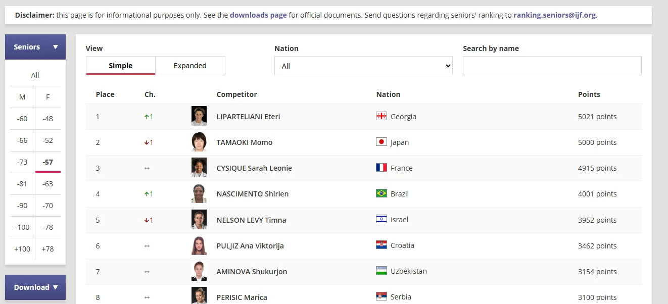 მსოფლიო ჩემპიონი და ევროპის ჩემპიონატზე ქალთა შორის 57 კგ წონით კატეგორიაში ეთერ ლიპარტელიანი ძიუდოს მსოფლიო რეიტინგის ლიდერია!