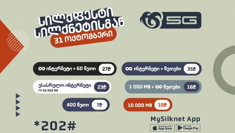 31 ოქტომბერი - სილქფესტის დღეა! კოდით *202#, აპლიკაციით Mysilknet, ან სილქნეტის საიტიდან, აბონენტები ჩაირთავენ სილქფესტის რჩეულ პაკეტებს სპეციალურ ფასად: