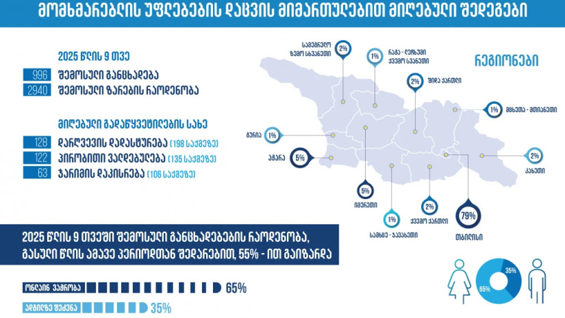მომხმარებლის უფლებების დაცვის მიმართულებით, მიმდინარე წლის 9 თვეში, GCCA-ში - 996 განაცხადი დაფიქსირდა, ხოლო შემოსული ზარების რაოდენობამ 2940 შეადგინა.