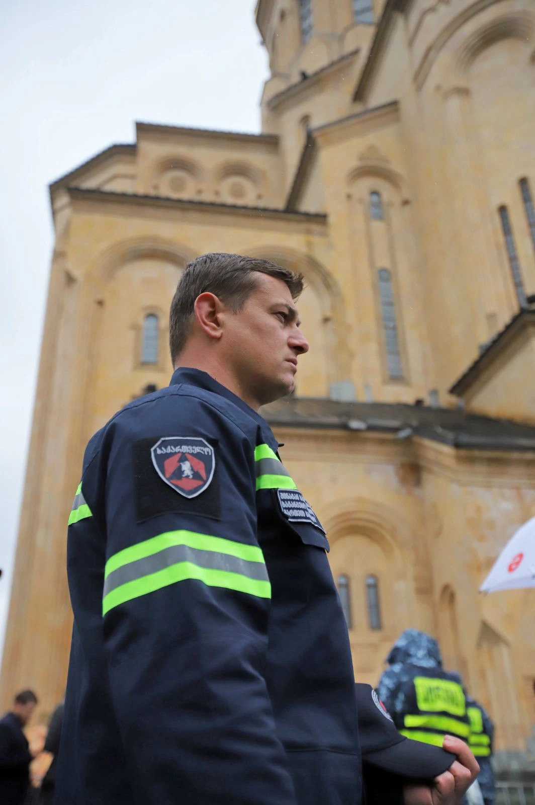 .ისინი, სამების საკათედრო ტაძარში მსვლელობით მივიდნენ. მსვლელობას წინ მიუძღვებოდნენ საგანგებო სიტუაციების მართვის სამსახურის უფროსი თემურ მღებრიშვილი და სამსახურის სხვა ხელმძღვანელი პირები.