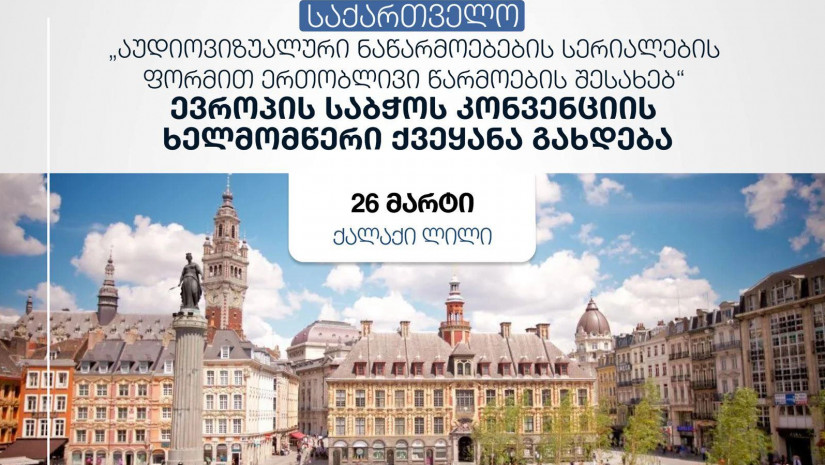 საფრანგეთის ქალაქ ლილში, საქართველოს კულტურის მინისტრი თინათინ რუხაძე ხელს მოაწერს ევროპის საბჭოს კონვენციას „აუდიოვიზუალური ნაწარმოებების სერიალების ფორმით ერთობლივი წარმოების შესახებ“.