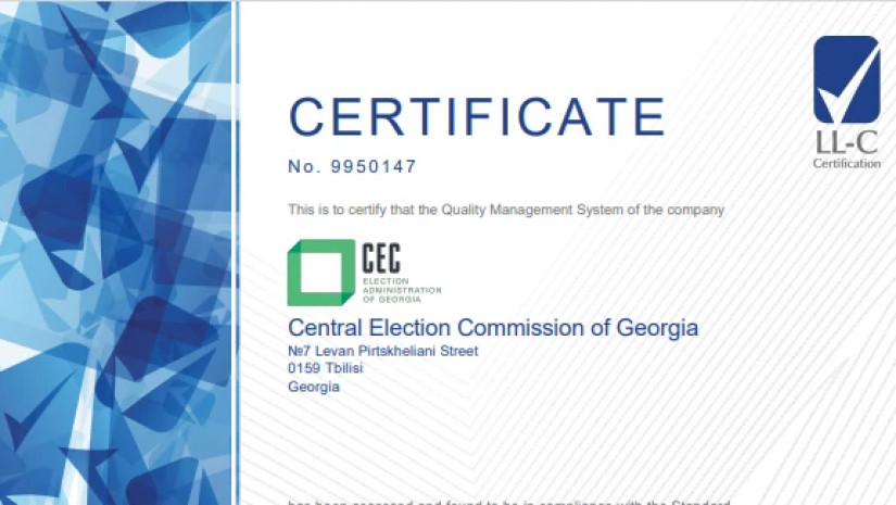 ცენტრალურმა საარჩევნო კომისიამ ISO 9001:2015-ის ფარგლებში საერთაშორისო აუდიტი პირველად 2019 წელს გაიარა.