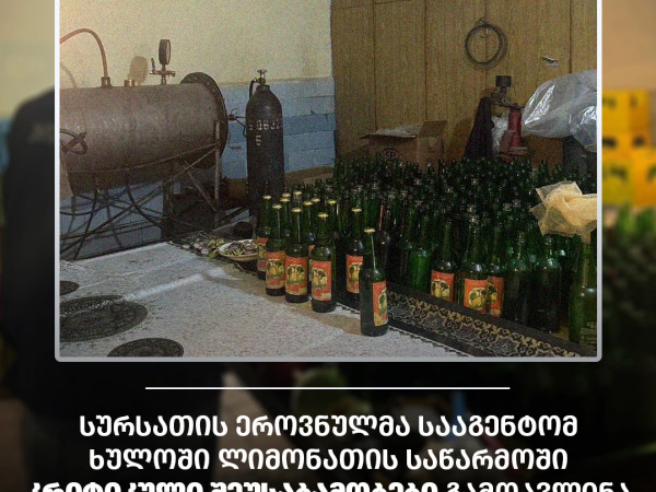 სურსათის ეროვნული სააგენტოს აჭარის დეპარტამენტის ინსპექტორებმა დაბა ხულოში (მამულაძის ქ. N5) ლიმონათის არალეგალური საწარმო გამოავლინეს.