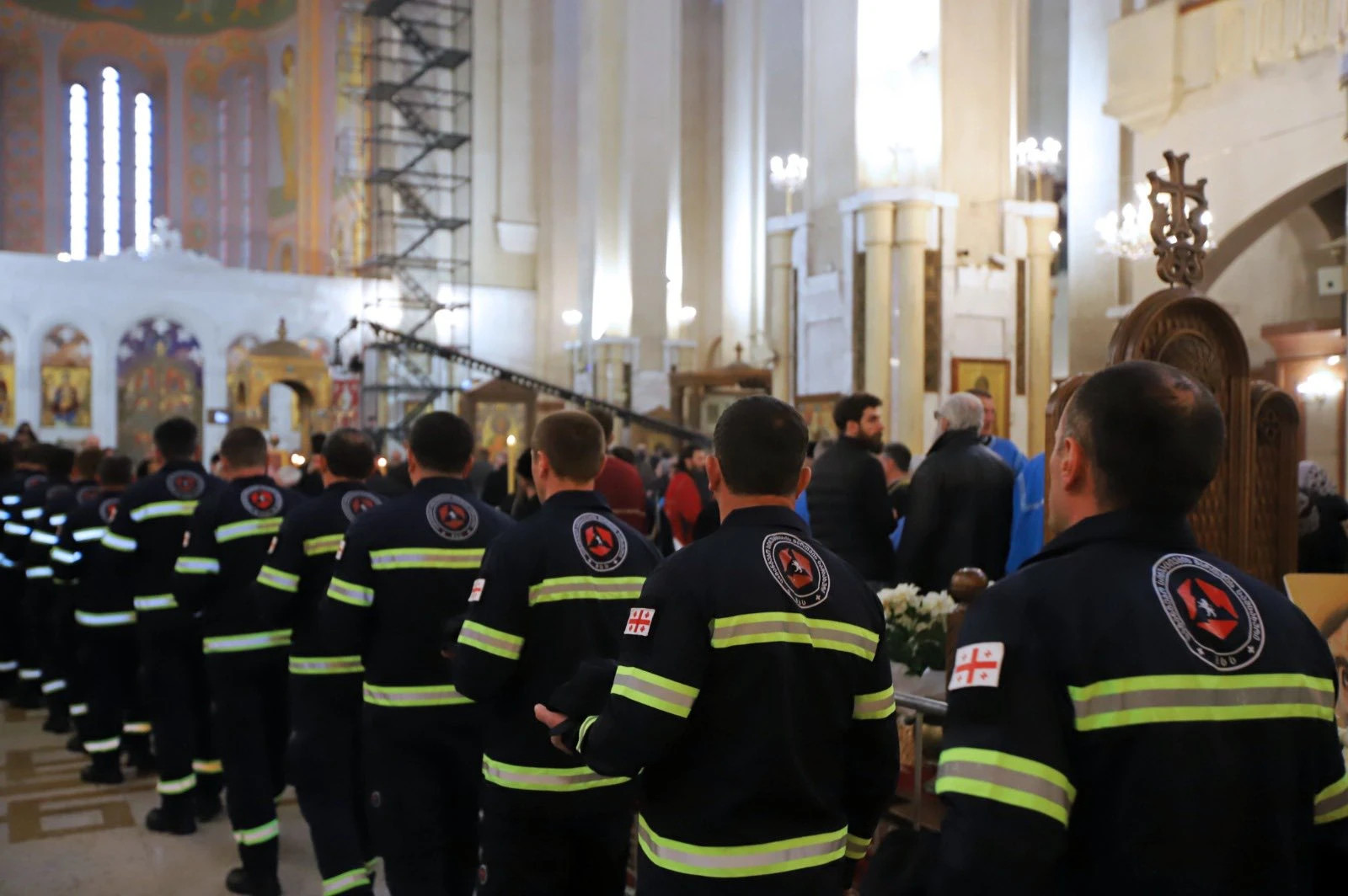 .ისინი, სამების საკათედრო ტაძარში მსვლელობით მივიდნენ. მსვლელობას წინ მიუძღვებოდნენ საგანგებო სიტუაციების მართვის სამსახურის უფროსი თემურ მღებრიშვილი და სამსახურის სხვა ხელმძღვანელი პირები.
