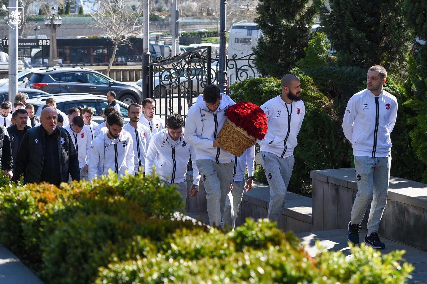 სიონის საპატრიარქო ტაძარში ეროვნული ნაკრების ფეხბურთელები მივიდნენ და კათოლიკოს - პატრიარქის, უწმინდესისა და უნეტარესის ილია II-ის ხსოვნას პატივი მიაგეს.